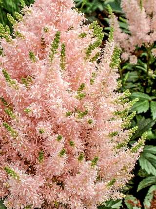 Pale pink blooms brighten any shady spot in the garden. This lovely perennial has tall, pyramidal flower spikes borne on long stems above the foliage. The strong stems make this a great plant for a cutting garden, also excellent used in borders and containers.
