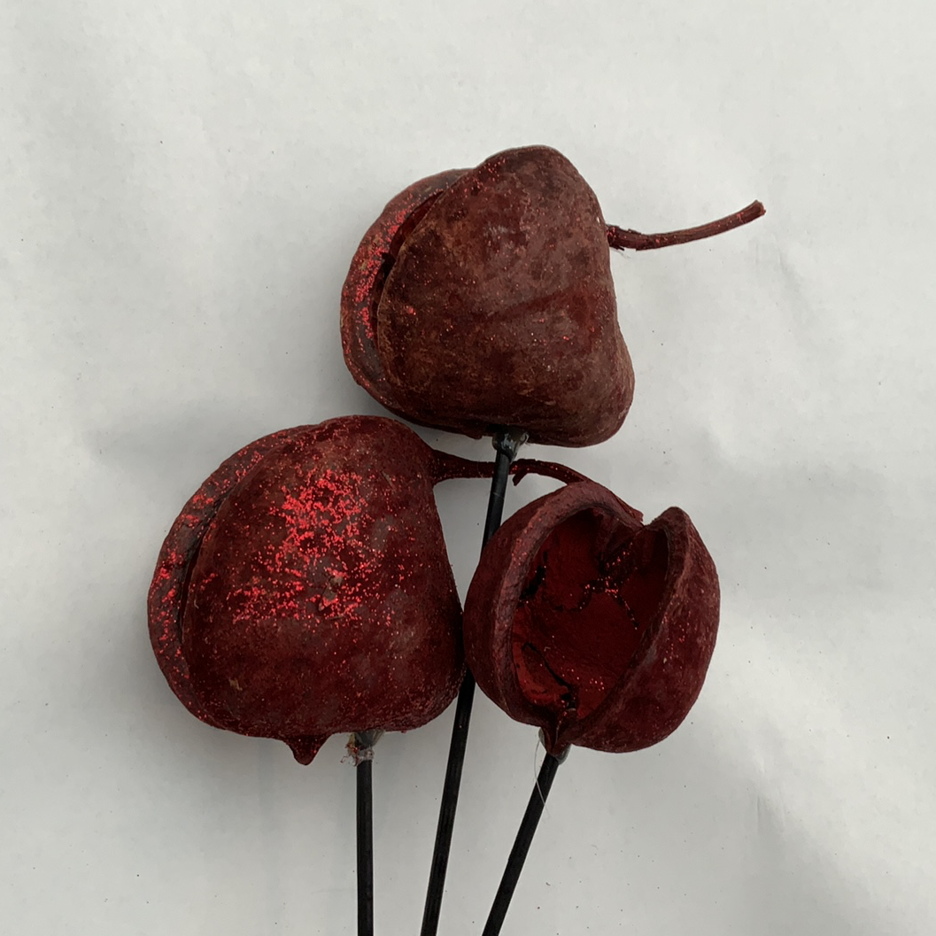 A bunch of three Buddha Nuts on a 12" pick, in a variety of colours, used to insert into urns and arrangements.