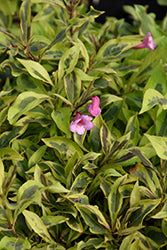 This extraordinary variety forms a low mounded shrub with sparkling yellow, green, and burgundy foliage all season long; rose-pink trumpet-shaped flowers attract hummingbirds and butterflies in spring; very showy, ideal for the mixed garden border
