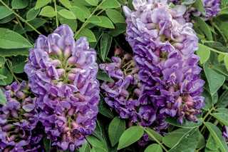 Clusters of purple flowers bloom in spring on a smaller, better behaved wisteria that is perfect for smaller gardens. Ideal for growing on a trellis or arbor, it also performs well in a large container.